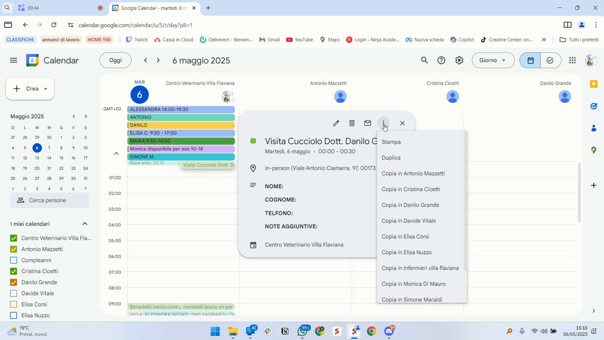 - Oppure usate l’opzione “Copia in” per copiarlo in un calendario specifico